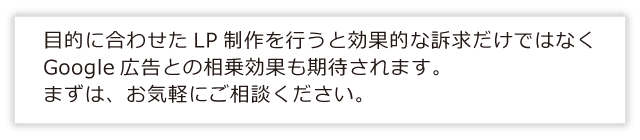 ランディングページは、ユーザーが最も知りたいこととに対し、直感的に情報をお届けすることを目的としております。