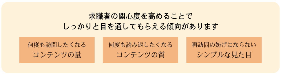 貴社の強みや社風、募集要項、仕事内容など、求職者が求めている情報を求心力に