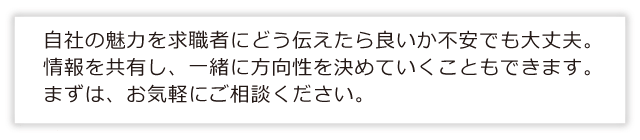 変えてきます。 そのための必要な情報を共有しながら、採用戦略を設計してまいります。