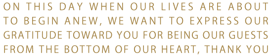 お父さん、お母さんのおかげで今日の日を迎えることができました。本当にありがとうございます。まだまだ未熟者ですので、迷惑を掛けると思いますが、どうぞよろしくお願いいたします。