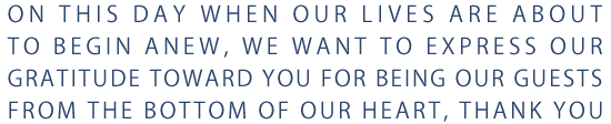 お父さん、お母さんのおかげで今日の日を迎えることができました。本当にありがとうございます。まだまだ未熟者ですので、迷惑を掛けると思いますが、どうぞよろしくお願いいたします。